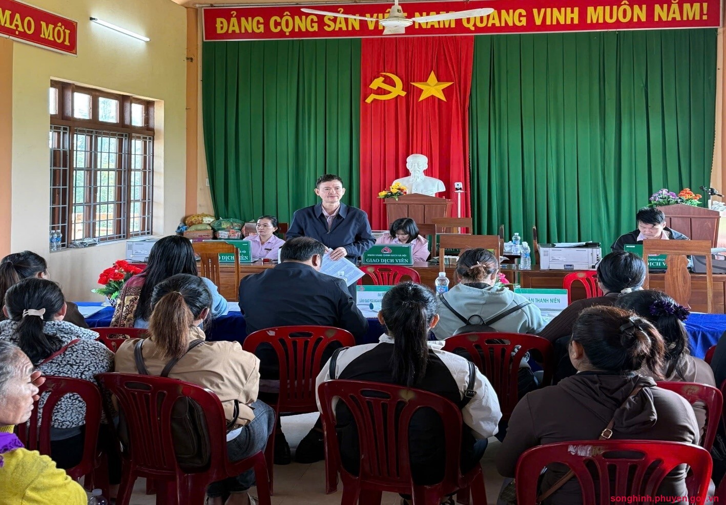 Triển khai nội dung về chính sách hỗ trợ tạo việc làm, duy trì, mở rộng việc làm theo Nghị định số 338/2025/NĐ-CP tại buổi họp giao ban Điểm giao dịch EaTrol, xã Sông Hinh