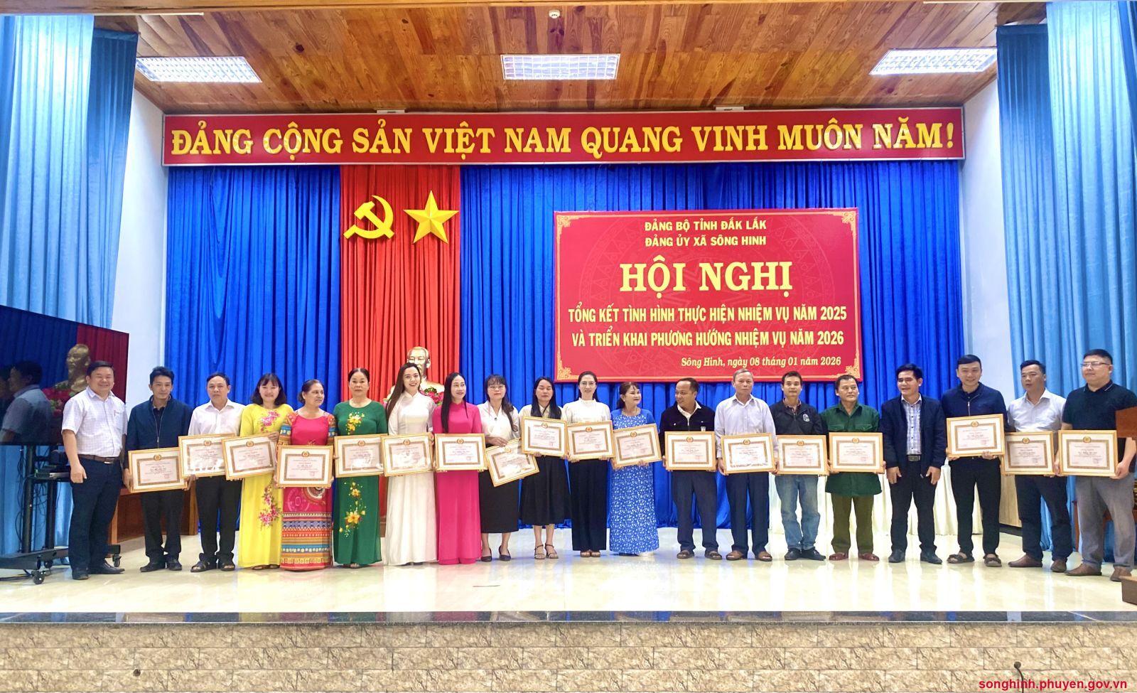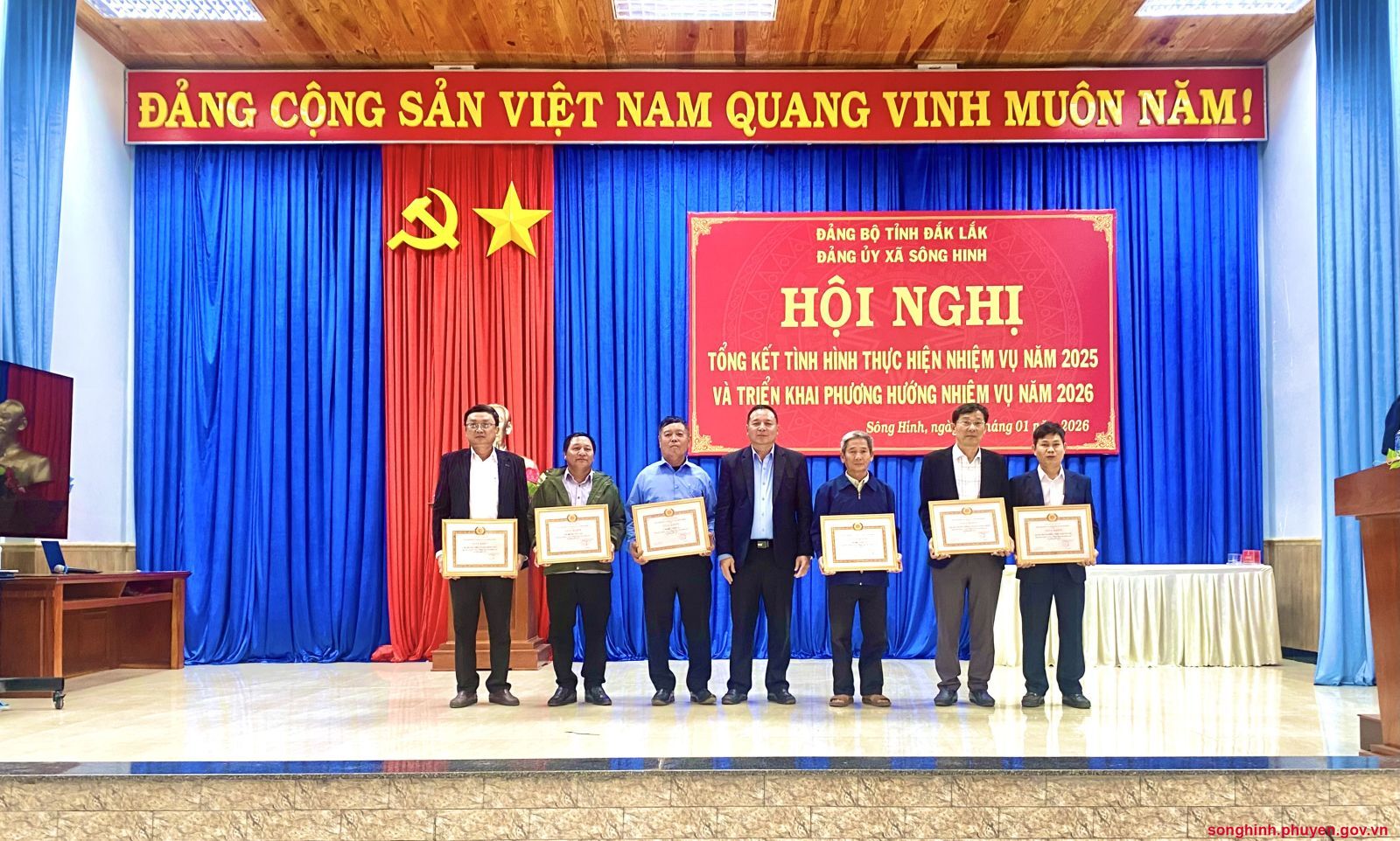 Dự và chủ trì hội nghị có đồng chí Lơ Mô Tu, tỉnh ủy viên, Bí thư Đảng ủy, đồng chí Huỳnh Thị Thu Trang, Phó Bí thư Thường trực Đảng ủy; Các đồng chí Đảng ủy viên, Chủ tịch, Phó chủ tịch HĐND, UBND, Ủy ban MTTQ Việt Nam xã, Đại diện lãnh đạo các cơ quan, đơn vị: UBKT Đảng ủy; Ban Xây dựng Đảng; Văn phòng Đảng ủy; Trung tâm Chính trị Sông Hinh; Công an; Quân sự; Các Ban HĐND xã; Văn phòng HĐND và HĐND; Phòng Kinh tế; Phòng Văn hóa-Xã hội; Trung tâm hành chính công xã; Trung tâm Cung ứng dịch vụ sự nghiệp công xã Sông Hinh dự và đưa tin về hội nghị, Bí thư các tổ chức đảng trực thuộc Đảng ủy xã. Các tập thể, cá nhân được khen thưởng năm 2025.