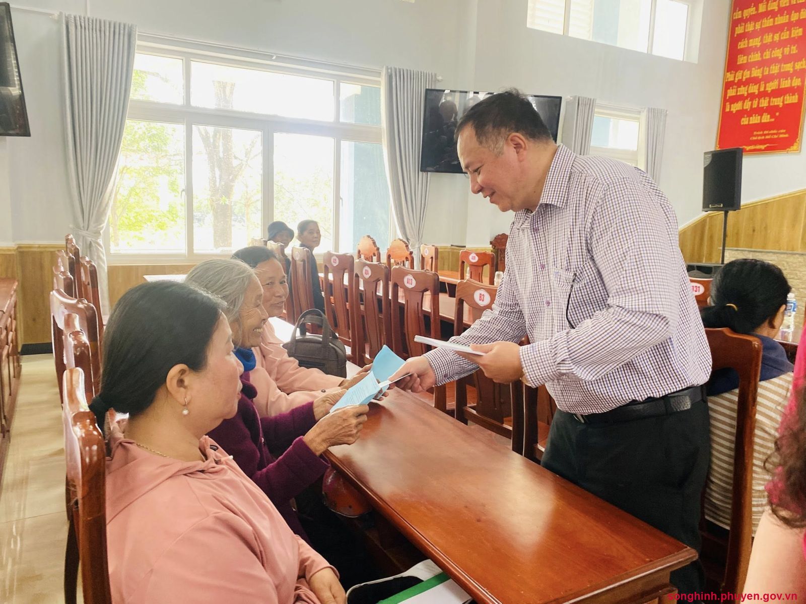 Phó Chủ tịch Thường trực UBND tỉnh Hồ Thị Nguyên Thảo tặng quà tết cho người dân xã Sông HInh