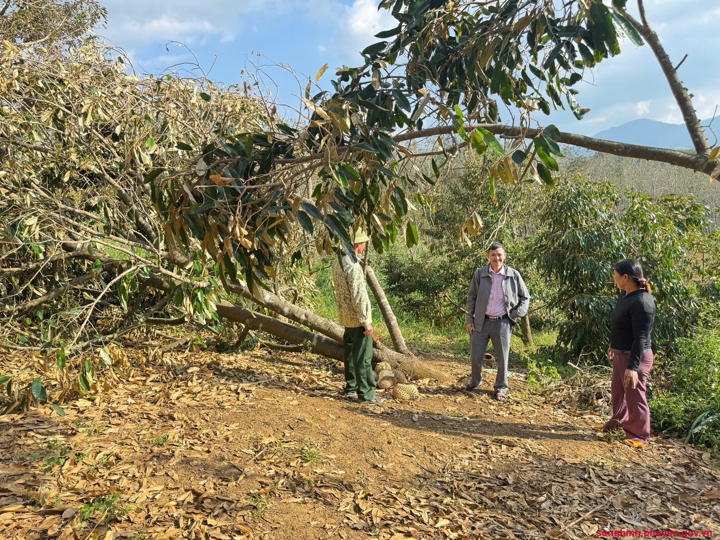 Lãnh đạo Phòng diao dịch Ngân hàng CSXH Sông Hinh khảo sát thiệt hại do bão lũ trong sản xuất nông nghiệp của người dân