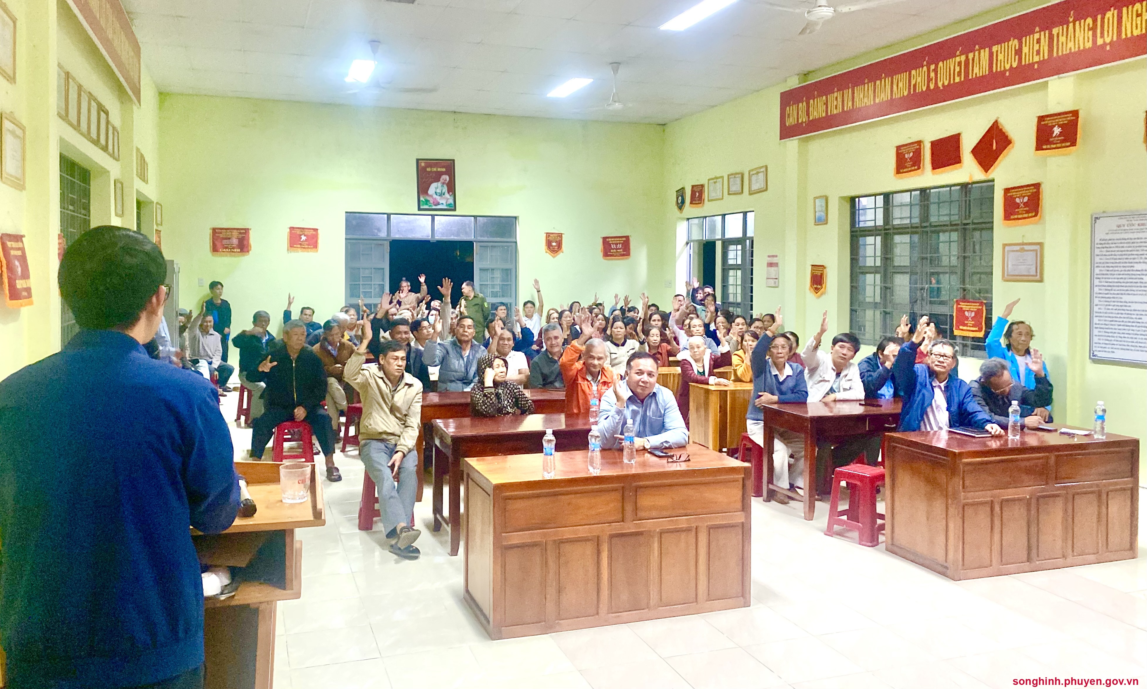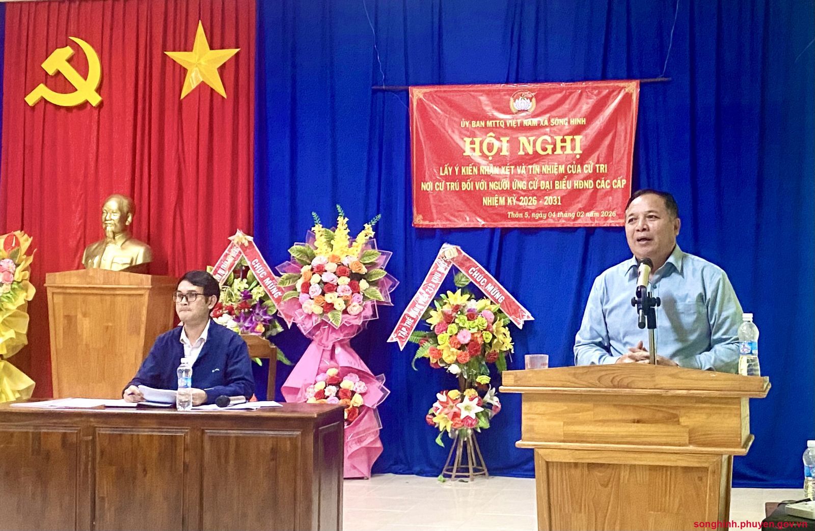 Tối ngày 04/02/2026, Ủy ban MTTQ Việt Nam xã Sông Hinh phối hợp Ban Công tác Mặt trận Thôn 5 đã tổ chức thành công Hội nghị lấy ý kiến nhận xét và tín nhiệm của cử tri nơi cư trú đối với những người được giới thiệu ứng cử đại biểu HĐND các cấp nhiệm kỳ 2026-2031.