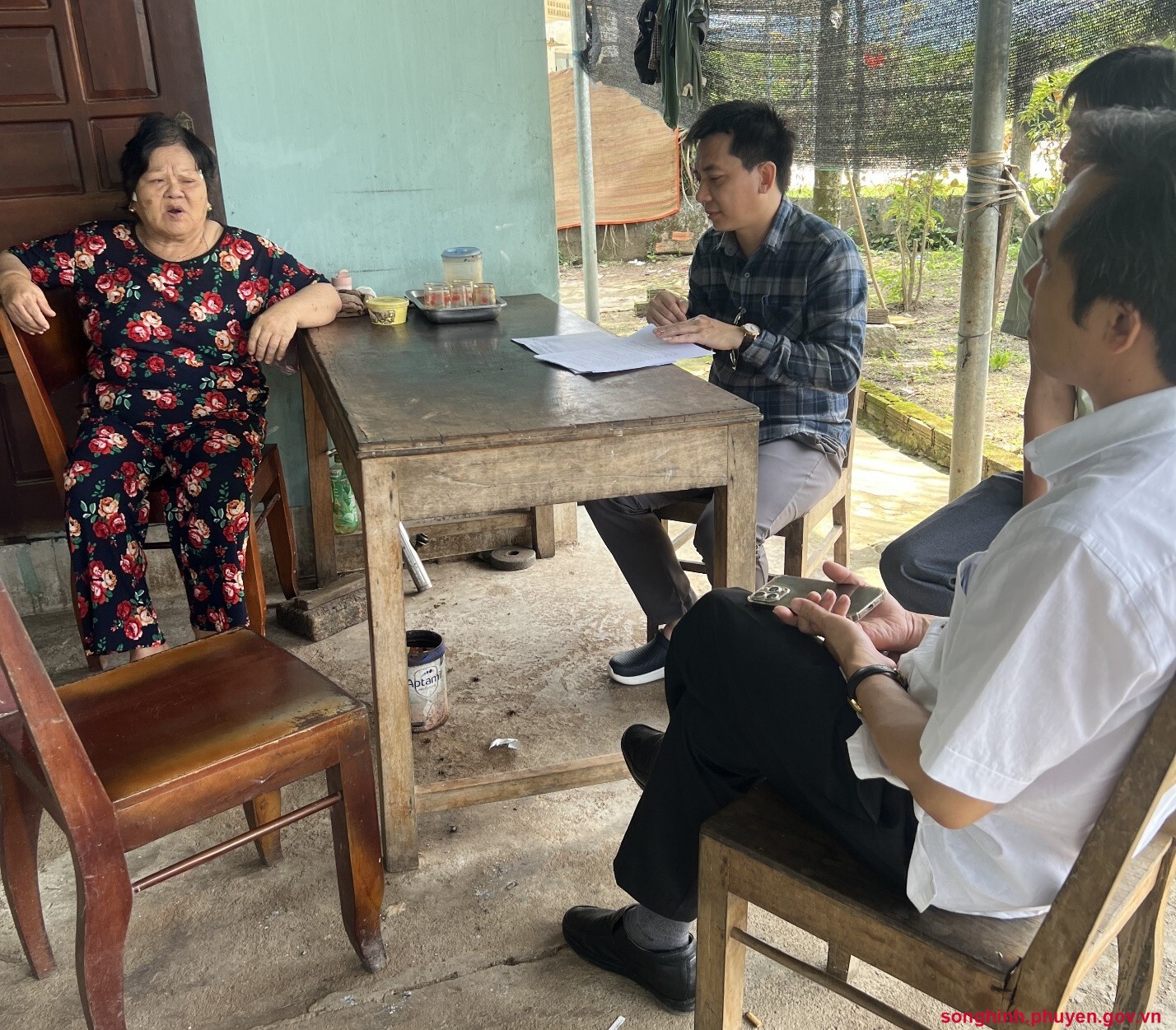 Đồng chí Nguyễn Anh Tuấn, Phó Giám đốc Ban Quản lý và xử lý nợ rủi rokiểm tra trực tiếp hộ vay bị rủi ro do nguyên nhân khách quan tại Điểm giao dịch Sơn Giang, xã Đức Bình