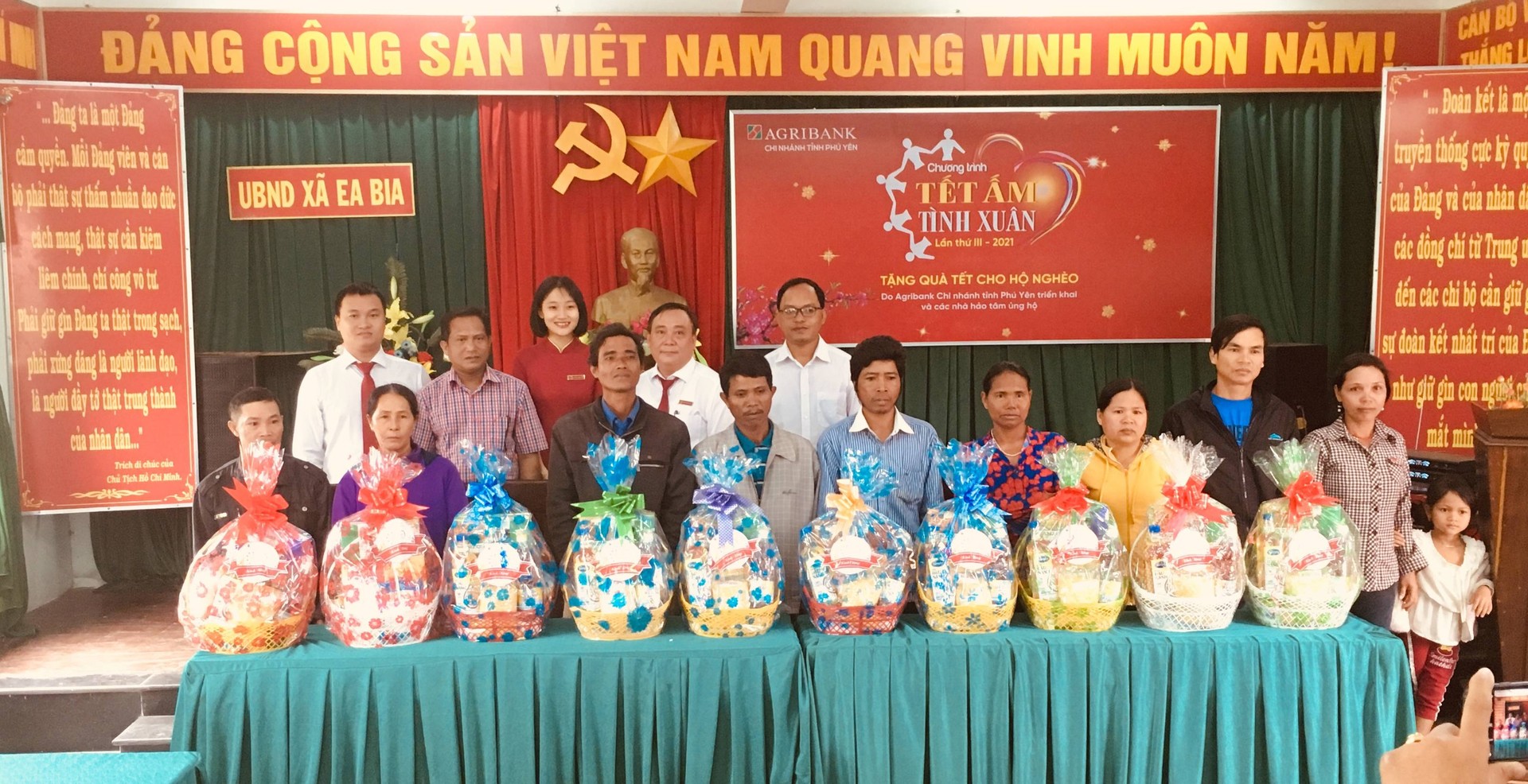 Sáng ngày 28/1, tại xã Ea Bia, Ngân hàng Nông nghiệp và Phát triển Nông thôn huyện Sông Hinh (Agribank Sông Hinh) đã tổ chức chương trình Tết ấm tình xuân lần thứ 3 năm 2021. Tại đây, lãnh đạo đơn vị Agriabank đã có lời thăm hỏi, chúc mừng năm mới và tặng 35 suất quà cho các hộ dân nghèo, chính sách, hoàn cảnh khó khăn trong xã.