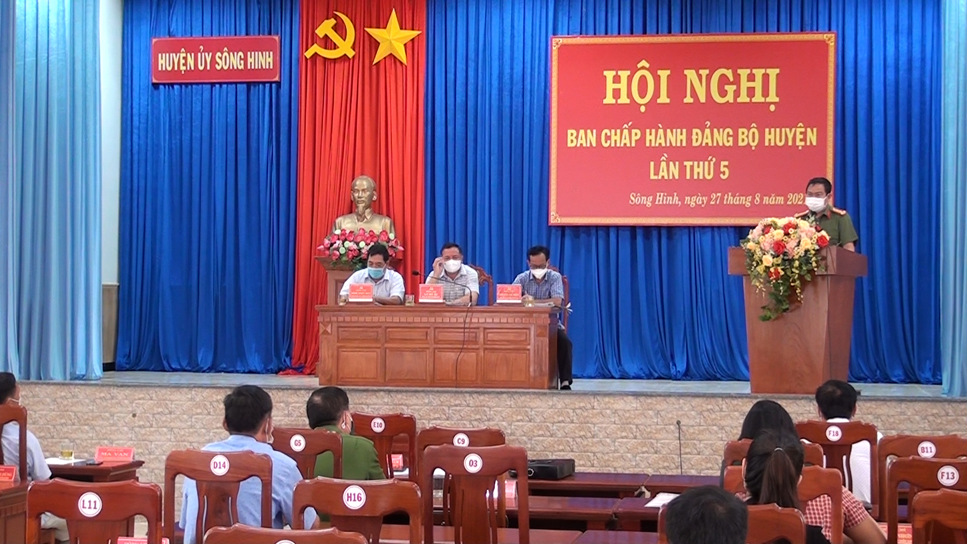 Sáng ngày 27/8, Ban chấp hành Đảng bộ huyện Sông Hinh tổ chức hội nghị lần thứ 5 đánh giá tình hình thực hiện nhiệm vụ 9 tháng đầu năm, triển khai công tác 3 tháng cuối năm 2021. Về dự có Đại tá Phan Thanh Tám, Giám đốc Công an tỉnh Phú Yên, Thường vụ Tỉnh ủy phụ trách địa bàn.