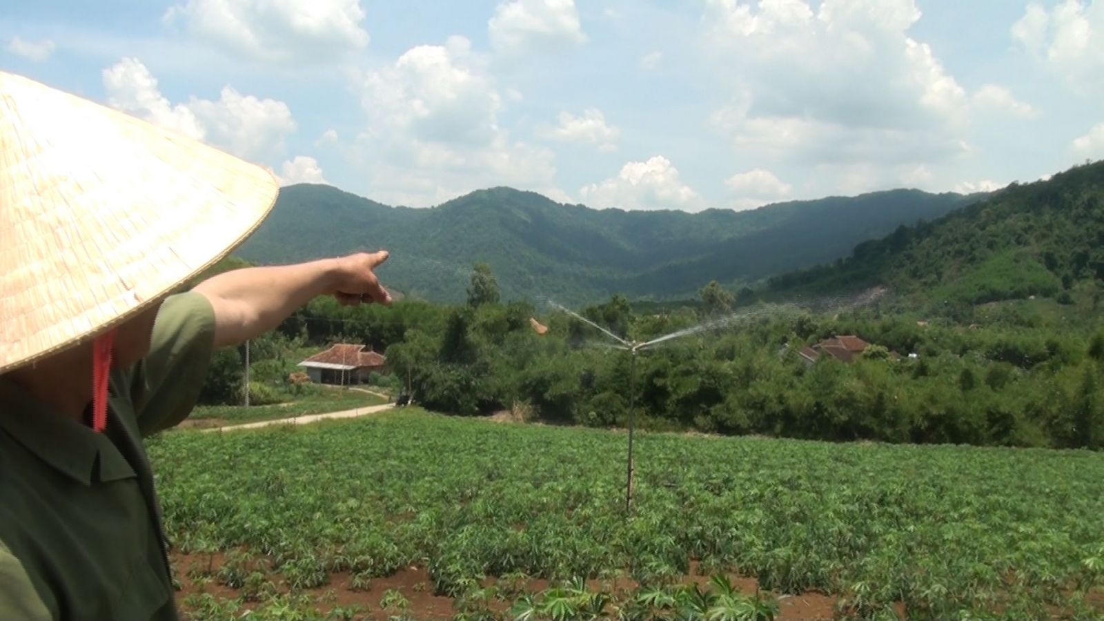 Từ đường ống dẫn nước chung của làng Dao, gia đình anh Bàn Nguyên Tư đã đầu tư thêm đường ống, pet phun tự động để tưới cho gần 7 hecta sắn trồng xen với sầu riêng. Anh Bàn Nguyên Tư chia sẻ: Trước đây không có nước tưới, cây sắn trồng rất khó lên, tỷ lệ hư hao nhiều và năng suất thấp. Từ khi có nước, sắn phát triển tốt, năng suất và chữ bột cũng cao hơn. Nếu giá cả ổn định, bình quân mỗi năm gia đình có lợi nhuận khoảng 60 triệu đồng.