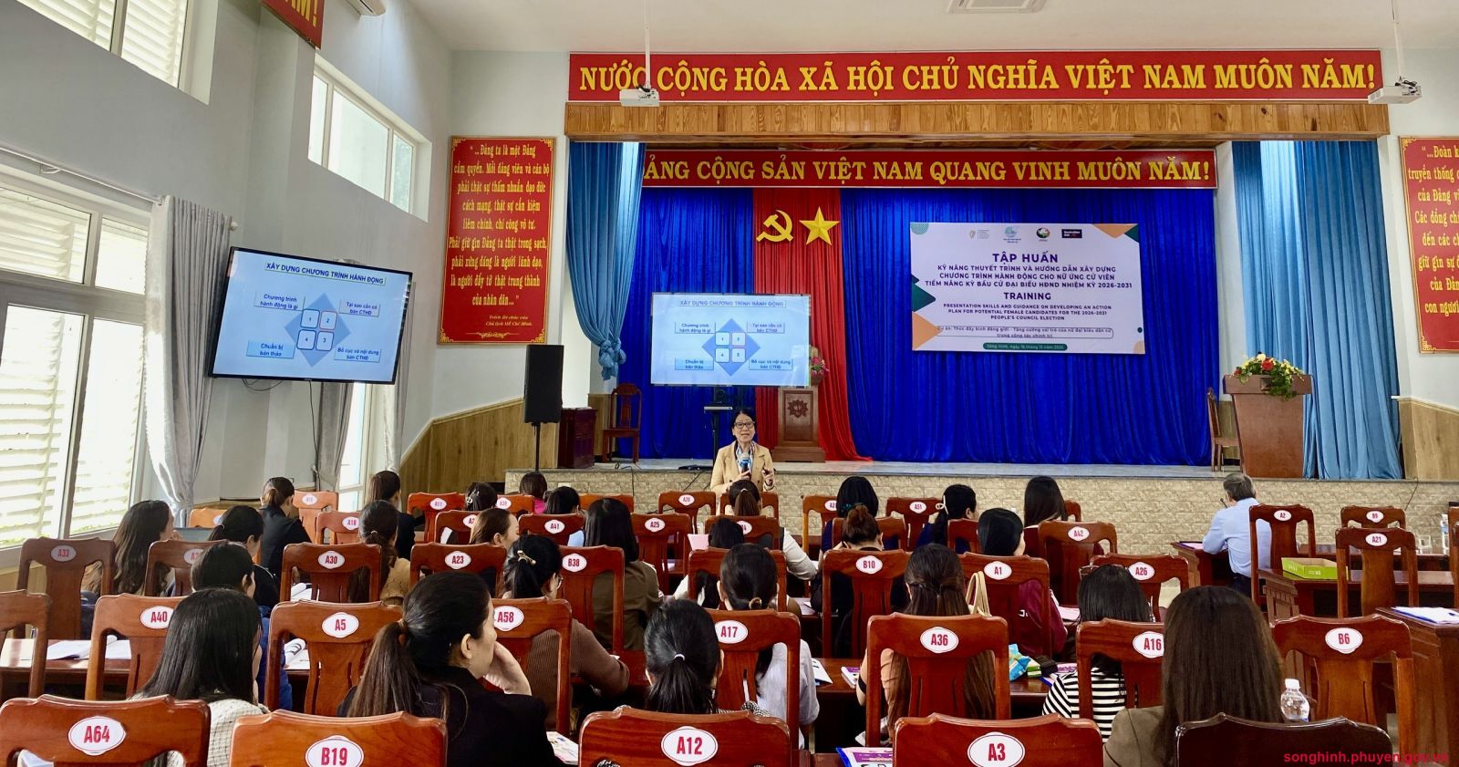 Ngày 16/12, tại xã Sông Hinh, Hội LHPN tỉnh Đắk Lắk và Tổ chức Nhân dân Australia vì y tế, giáo dục và phát triển hải ngoại tại Việt Nam (Tổ chức APHEDA Việt Nam) phối hợp tổ chức tập huấn kỹ năng thuyết trình và hướng dẫn xây dựng chương trình hành động cho 50 nữ ứng cử viên tiềm năng kỳ bầu cử đại biểu HĐND nhiệm kỳ 2026-2031 của 5 xã Sông Hinh, EaLy, Ea Bá, Đức Bình và xã Sơn Thành.
