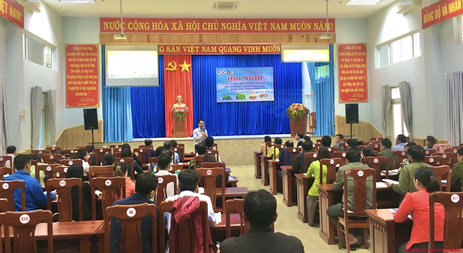 Sáng 2/12, UBND huyện Sông Hinh tổ chức hội nghị tập huấn nâng cao chất lượng nguồn nhân lực thực hiện chương trình mỗi xã một sản phẩm trên địa bàn huyện Sông Hinh năm 2022. Tham dự có các lãnh đạo một số phòng, ban huyện; lãnh đạo xã, thị trấn; cán bộ, công chức phụ trách công tác Nông thôn mới và 30 nông dân tiêu tiểu trên địa bàn huyện.