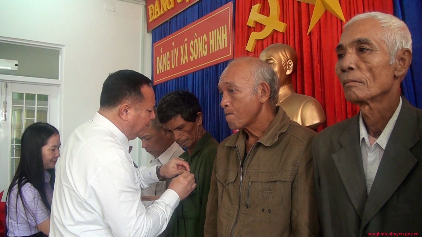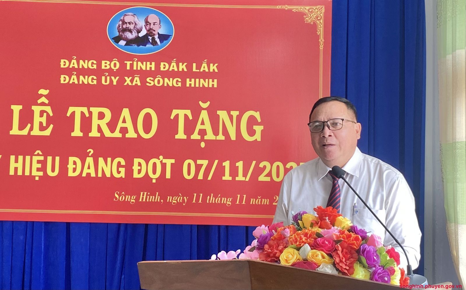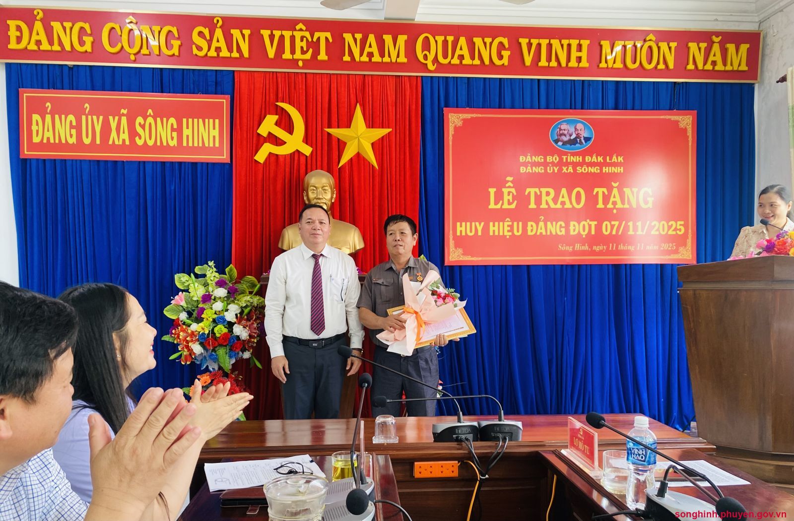 Tại buổi lễ, Ban Thường vụ Đảng ủy xã đã công bố quyết định của Ban Thường vụ Tỉnh ủy Đắk Lắk về việc tặng và truy tặng Huy hiệu Đảng cho 787 đảng viên trong toàn tỉnh. Trong đó, Đảng bộ xã Sông Hinh có 15 đồng chí được vinh dự nhận Huy hiệu Đảng, gồm: 1 đồng chí truy tặng Huy hiệu 60 năm tuổi Đảng, (đồng chí Hoàng Phạm Sinh); 1 đồng chí nhận Huy hiệu 45 năm tuổi Đảng, (đồng chí Cao Xuân Trợ); 8 đồng chí nhận Huy hiệu 40 năm tuổi Đảng; và 05 đồng chí nhận Huy hiệu 30 năm tuổi Đảng.