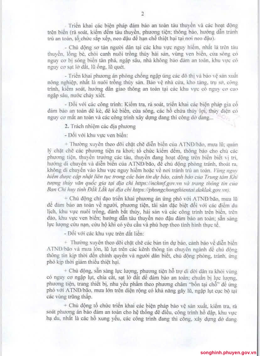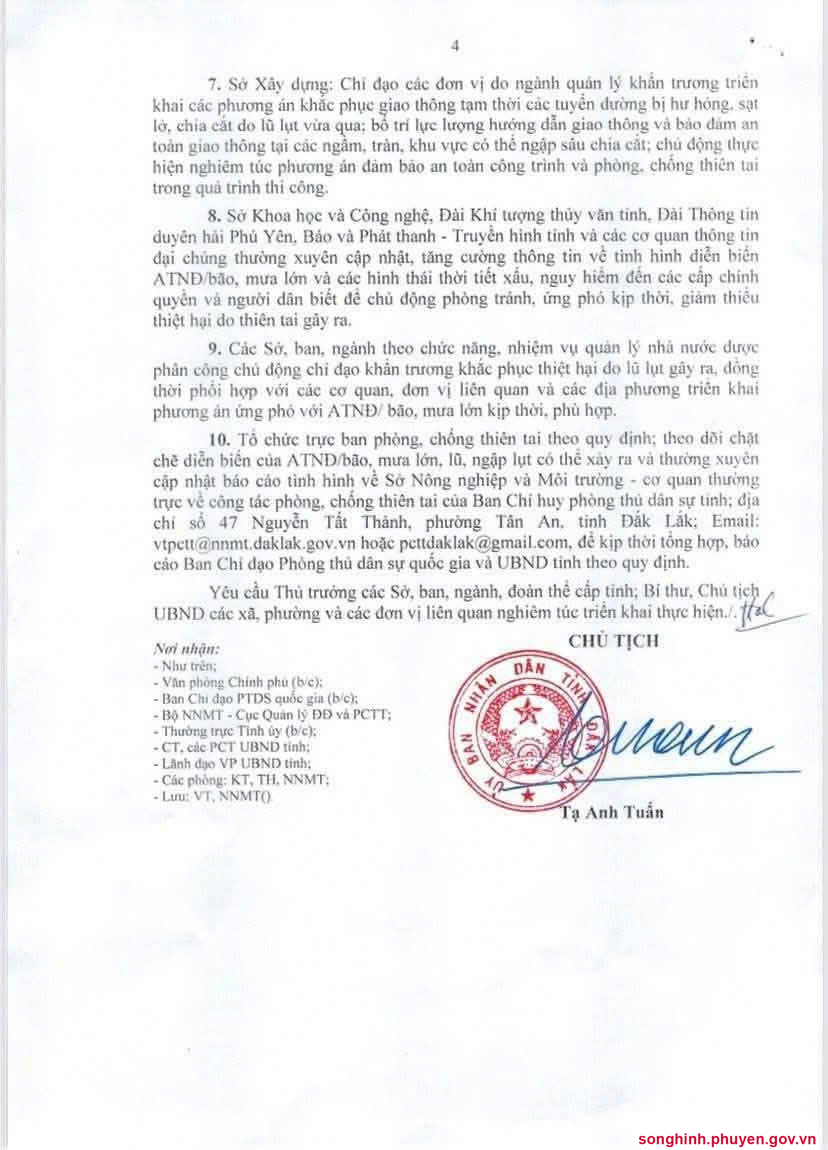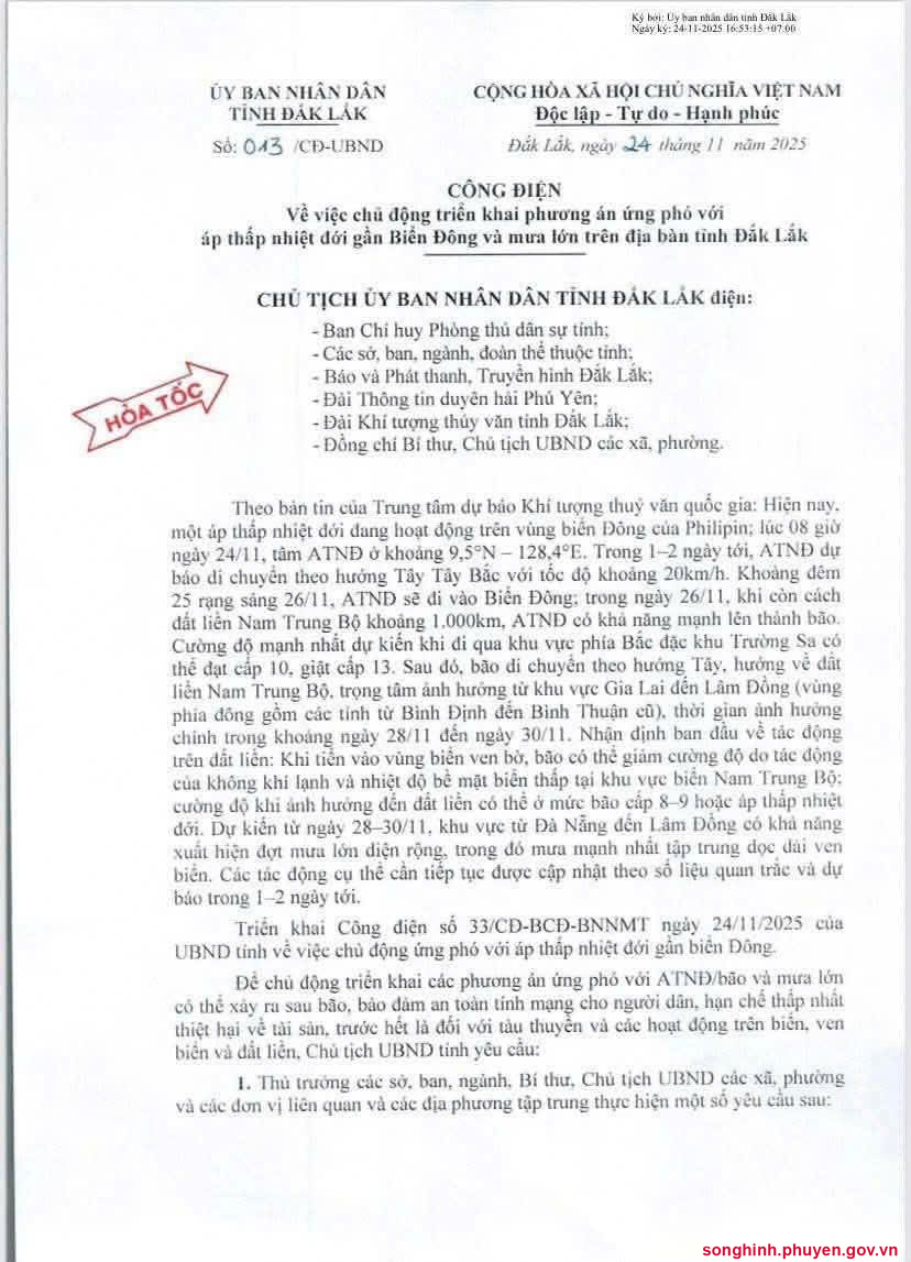 Công báo khẩn của UBND tỉnh về áp thấp nhiệt đới và mưa lớn (24/11)