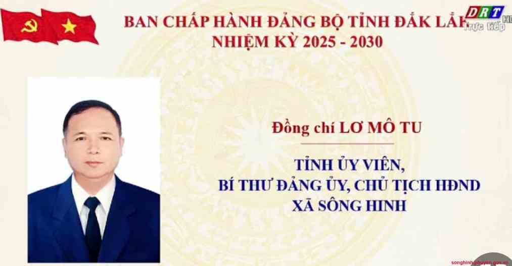 Đồng chí Lơ Mô Tu- Bí thư Đảng ủy xã Sông Hinh được Bộ Chính trị, Ban Bí thư chỉ định tham gia Ban Chấp hành Đảng bộ tỉnh, khóa I, nhiệm kỳ 2025 - 2030 (Ảnh chụp màn hình DRT)