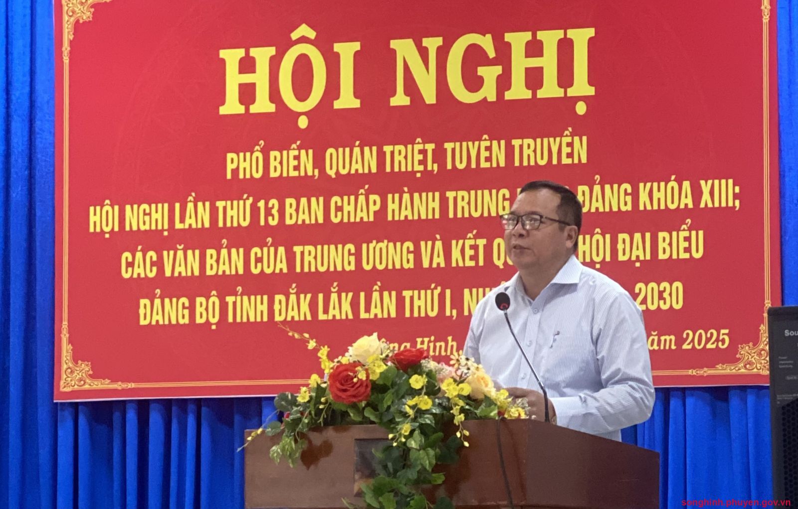 Tại hội nghị, các đại biểu đã được nghe đồng chí Lơ Mô Tu, Tỉnh ủy viên, Bí thư Đảng ủy, trực tiếp phổ biến, quán triệt những nội dung cốt lõi, quan trọng từ Hội nghị Trung ương 13 khóa XIII. Đồng thời, Bí thư Đảng ủy cũng đã báo cáo nhanh kết quả Đại hội đại biểu Đảng bộ tỉnh Đắk Lắk lần thứ I, nhiệm kỳ 2025-2030, thông tin về các mục tiêu, chỉ tiêu, các khâu đột phá chiến lược và kết quả chỉ định nhân sự Ban Chấp hành, Ban Thường vụ khóa mới. Đây là những thông tin định hướng quan trọng, giúp cán bộ, đảng viên nắm vững phương hướng phát triển của tỉnh trong 5 năm tới.