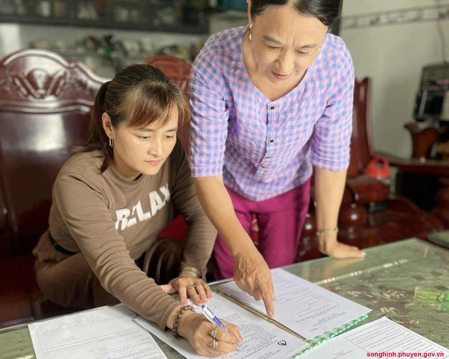 Bà Vũ Thị Thu Hằng hướng dẫn hộ vay viết đơn xin vay vốn