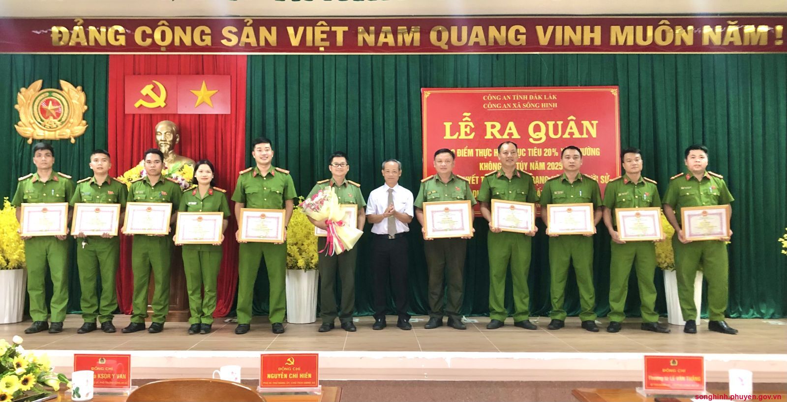 SÔNG HINH, ĐẮK LẮK - UBND xã Sông Hinh (tỉnh Đắk Lắk) tổ chức khen thưởng đột xuất cho tập thể Công an xã và 10 cá nhân có thành tích xuất sắc trong đấu tranh phòng, chống tội phạm về ma túy.