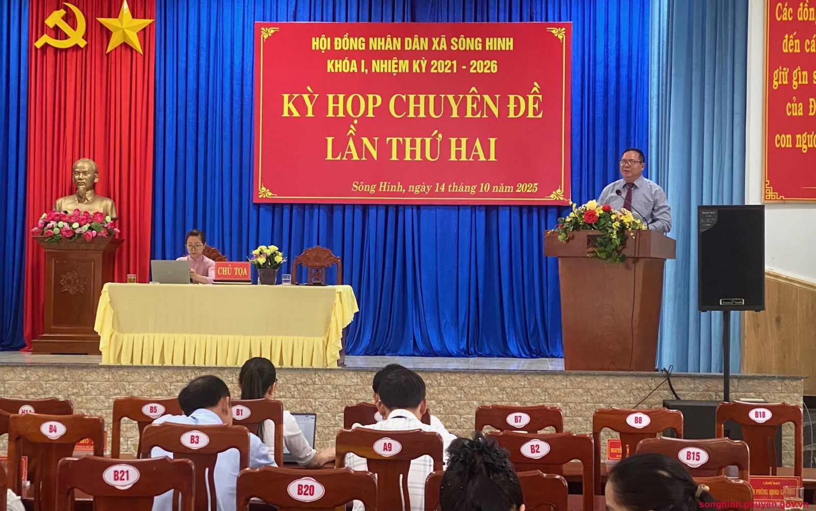 Sông Hinh, Đắk Lắk – Sáng ngày 14/10/2025, Hội đồng nhân dân (HĐND) xã Sông Hinh, Khóa I, Nhiệm kỳ 2021-2026, đã tổ chức Kỳ họp chuyên đề lần thứ Hai. Kỳ họp diễn ra tại Hội trường Đảng ủy xã và đã thống nhất 100% thông qua 06 Nghị quyết quan trọng về tổ chức, tài chính và đầu tư công.