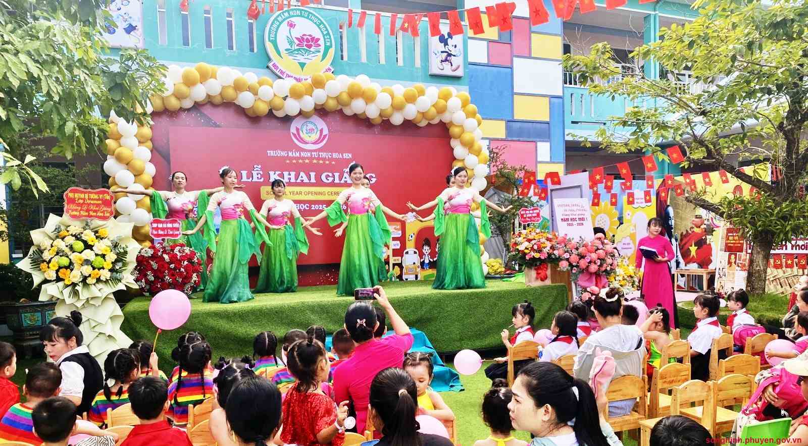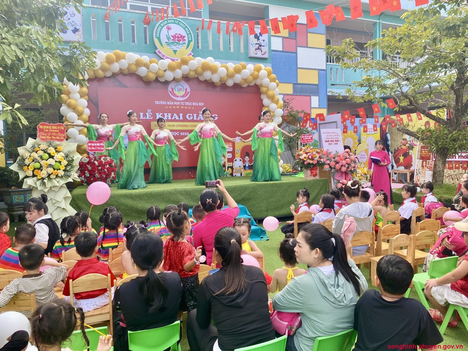 Chào đón năm học mới 2025 – 2026, Trường Mầm non Tư thục Hoa Sen có 7 lớp với hơn 160 học sinh và 22 cán bộ, giáo viên, nhân viên. Năm học vừa qua, thầy và trò trường Mầm non Tư Thục Hoa Sen đã có nhiều cố gắng, nỗ lực để duy trì, nâng cao chất lượng dạy và học. Buổi lễ khai giảng diễn ra trang nghiêm, ngắn gọn, phù hợp với lứa tuổi mầm non, tạo bầu không khí vui tươi, phấn khởi cho các bé ngay từ ngày đầu đến trường. Các tiết mục văn nghệ do cô và trò biểu diễn đã góp phần làm nên không khí rộn ràng, sôi nổi trong ngày hội khai trường.