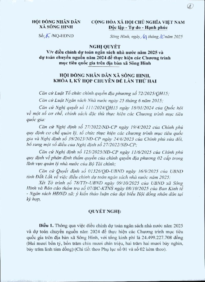 | Tiêu đề văn bản | Nghị quyết số 15- Điều chỉnh vốn CT MTTQ - KH Chuyên đề lần 2 | ||