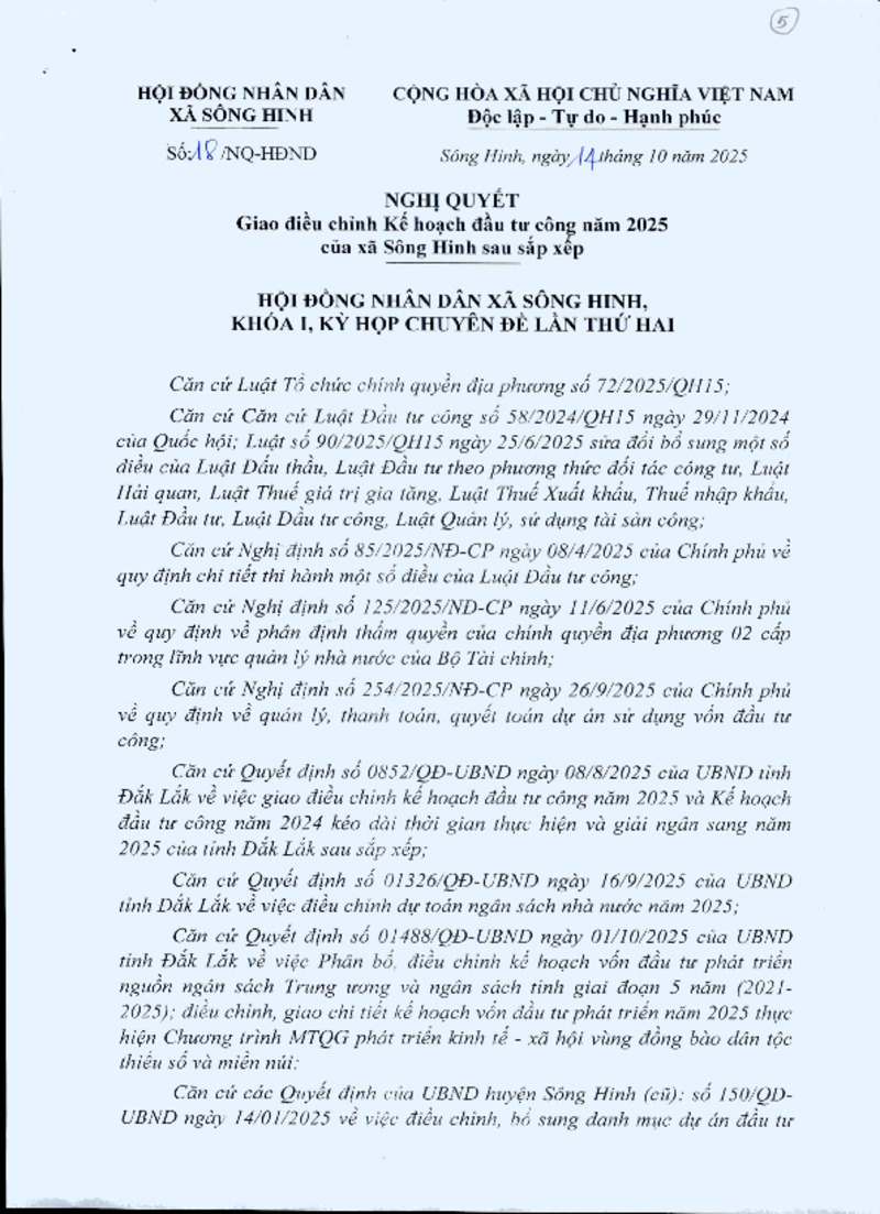 | Tiêu đề văn bản | Nghị quyết số 18- Giao KH đầu tư công 2025- KH Chuyên đề lần 2 | ||